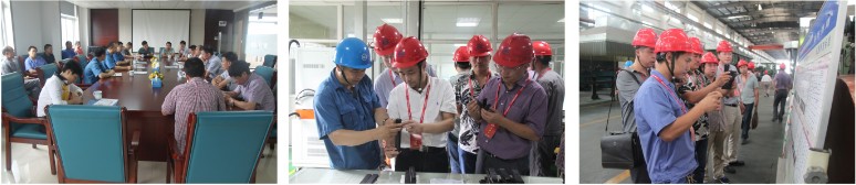 天臺縣人民政府副縣長楊堯生、天臺縣政協副主席曹元新一起參加了此次考察。首先董事長沈耿亮對天臺縣橡塑行業企業代表們的到來表示歡迎,并簡單介紹了我公司的情況。隨后,各企業家代表就產品的研發、生產、設備制造、員工隊伍建設等問題與沈董進行了交流。