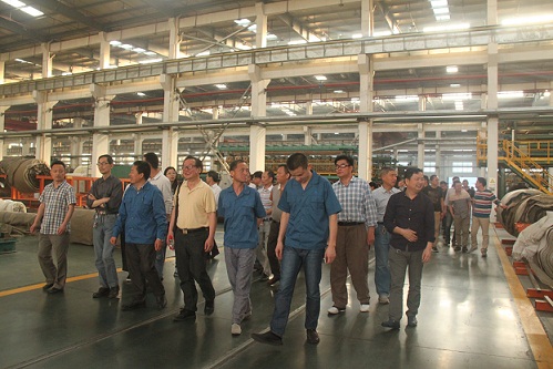 本報訊 5月22日,百余位茅盾中學黨員教師在學校黨委書記錢智躍的帶領下來我公司交流參觀。公司黨委書記董事長沈耿亮、副總經理沈洪發和行政部經理嚴宏斌熱情接待。
